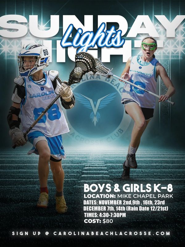 Join us this Fall for weekly games every Sunday evening. Teams will be separated into age levels for 30 minutes of practice, then battling it out for an hour long game! SNL will provide practice in catching, ground balls, passing, teamwork, and lots more. Working on these fundamentals in a team setting will set your player up for a great